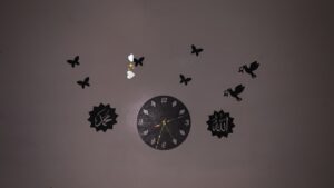 Allah Muhammad With Beautiful Butterfly Wooden Wall Clock Islamic 3d Style Wooden Wall Clock With Light